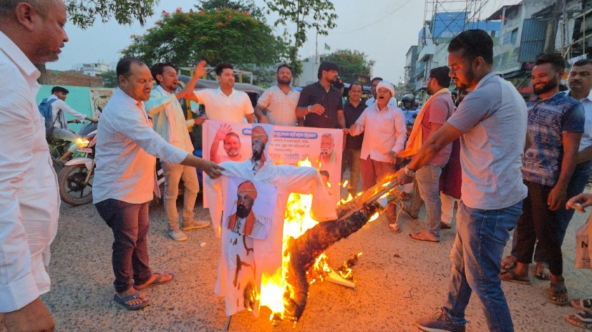 कॉंग्रेस नेताओं पर एफआईआर के विरोध में गृह मंत्री और उपमुख्यमंत्री का फूंका पुतला।
