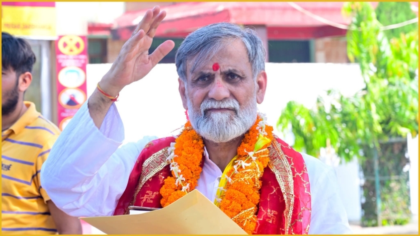 गीता हाथ मे लेकर नामांकन कराने पहुंचे जनसुराज से दरभंगा शहर के प्रत्याशी आर के मिश्रा, चुनाव को बताया पांडवों और कौरवों के बीच की लड़ाई।