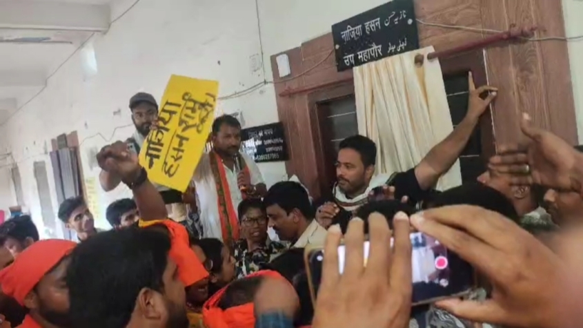 दरभंगा: दरभंगा नगर निगम की उप मेयर नाज़िया हसन द्वारा राष्ट्रीय स्वयंसेवक संघ (आरएसएस) पर दिए गए एक विवादित बयान के बाद शनिवार को नगर निगम परिसर में जमकर हंगामा और तोड़फोड़ हुई। भारतीय जनता पार्टी (भाजपा) के कार्यकर्ताओं और विभिन्न हिन्दू संगठनों ने नाज़िया हसन के इस्तीफे और सार्वजनिक माफी की मांग करते हुए विरोध प्रदर्शन किया।