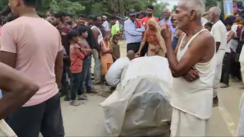विरोध में ग्रामीणों ने ठेंगहा-महिमान मार्ग को जाम कर दिया। मुआवजे की मांग को लेकर बीच रोड पर शव रखकर प्रदर्शन किया। इस दौरान सड़क के दोनों ओर वाहनों की लंबी कतारें लग गई। घटना लालपट्टी गांव की है।