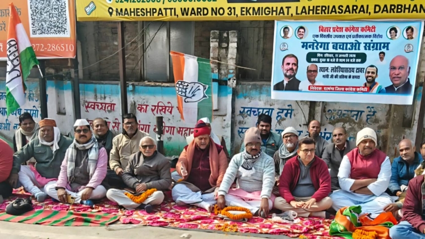 मनरेगा को कमजोर करने का विरोध, कांग्रेस नेताओं ने लहेरियासराय में रखा उपवास।