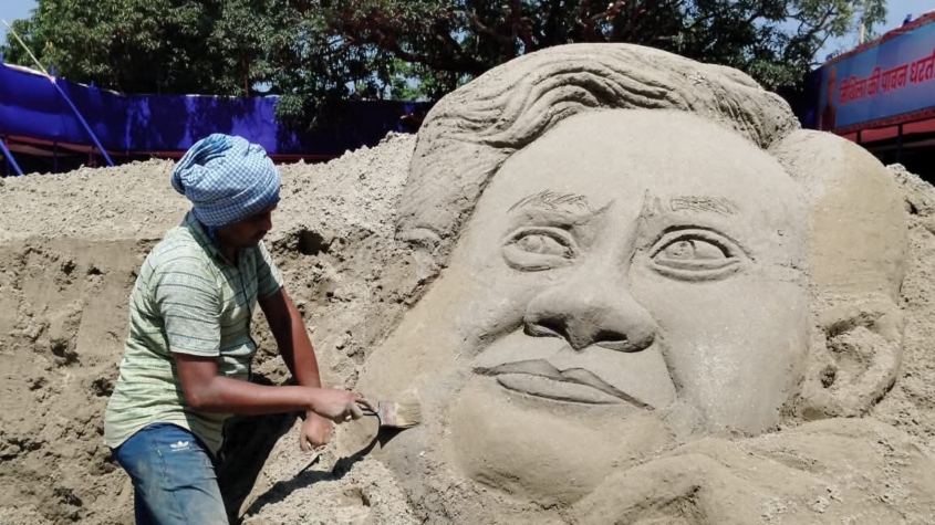 यहां देश के चर्चित युवा सैंड आर्टिस्ट मधुरेंद्र कुमार ने लगभग 30 टन बालू से मुख्यमंत्री की भव्य प्रतिमा का निर्माण किया है।36 घंटे में तैयार हुई कलाकृतिइस अनोखी कलाकृति को बनाने में सैंड आर्टिस्ट मधुरेंद्र को करीब 36 घंटे का समय लगा है। लगभग 30 हजार किलोग्राम बालू से तैयार इस प्रतिमा की ऊंचाई करीब 10 फीट है। अपने इस कला प्रदर्शन के जरिए उन्होंने मुख्यमंत्री को विकासपुरुष की छवि में दर्शाते हुए बढ़ते बिहार का सपना साकार करने का संदेश दिया है।