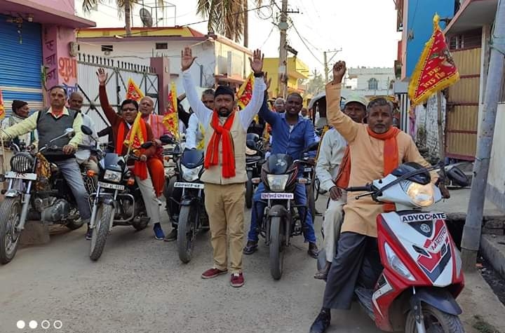 दरभंगा: श्रीराम जन्मभूमि तीर्थ क्षेत्र ट्रस्ट के आह्वान पर पूरे देश में निधि समर्पण अभियान चल रहा हैं। अभियान को गति देने के लिए शुभंकरपुर, रत्नोंपट्टी, बाजीतपुर में संघ व स्थानीय कार्यकर्ताओं के द्वारा लोगों में जन-जागरूकता के लिए मोटरसाइकिल यात्रा निकाली गई।