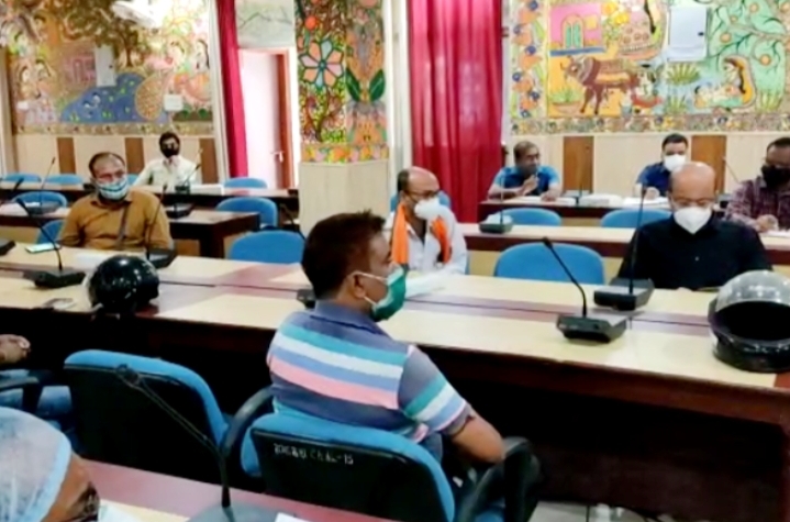 दरभंगा: समाहरणालय परिसर अवस्थित अम्बेडकर सभागार में जिलाधिकारी डॉ0 त्यागराजन एसएम की अध्यक्षता में कोरोना (कोविड-19) के बढ़ते संक्रमण के रोकथाम एवं व्यवस्थित ईलाज के लिए सरकार द्वारा जारी कोविड-19 ट्रीटमेन्ट प्रॉटोकॉल का अनुपालन कराने को लेकर सिविल सर्जन, सभी अनुमण्डल पदाधिकारी, अनुमण्डल पुलिस पदाधिकारी, सहायक औषधि नियंत्रक एवं औषधि निरीक्षकों के साथ बैठक आयोजित की गयी।