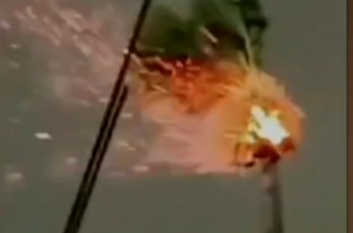 जमीन से लगभग सौ फीट ऊपर ताड़ के पेड़ में आग लग गयी. चक्रवाती तूफान और मूसलाधार वर्षा के बीच वज्रपात से ताड़ का पेड़ लोगों के देखते ही देखते धू-धूकर जलने लगा. खुले आसमान में ताड़ के पत्तों में लगी आग को तूफानी रफ्तार से चल रही हवाएं और तेज कर रही थीं. वीडियो में स्पष्ट दिख रहा है कि किस तरह ताड़ के पेड़ में लगी आग की लपटें उठ रही हैं. सोशल मीडिया पर यह वीडियो तेजी से वायरल हो रहा है.