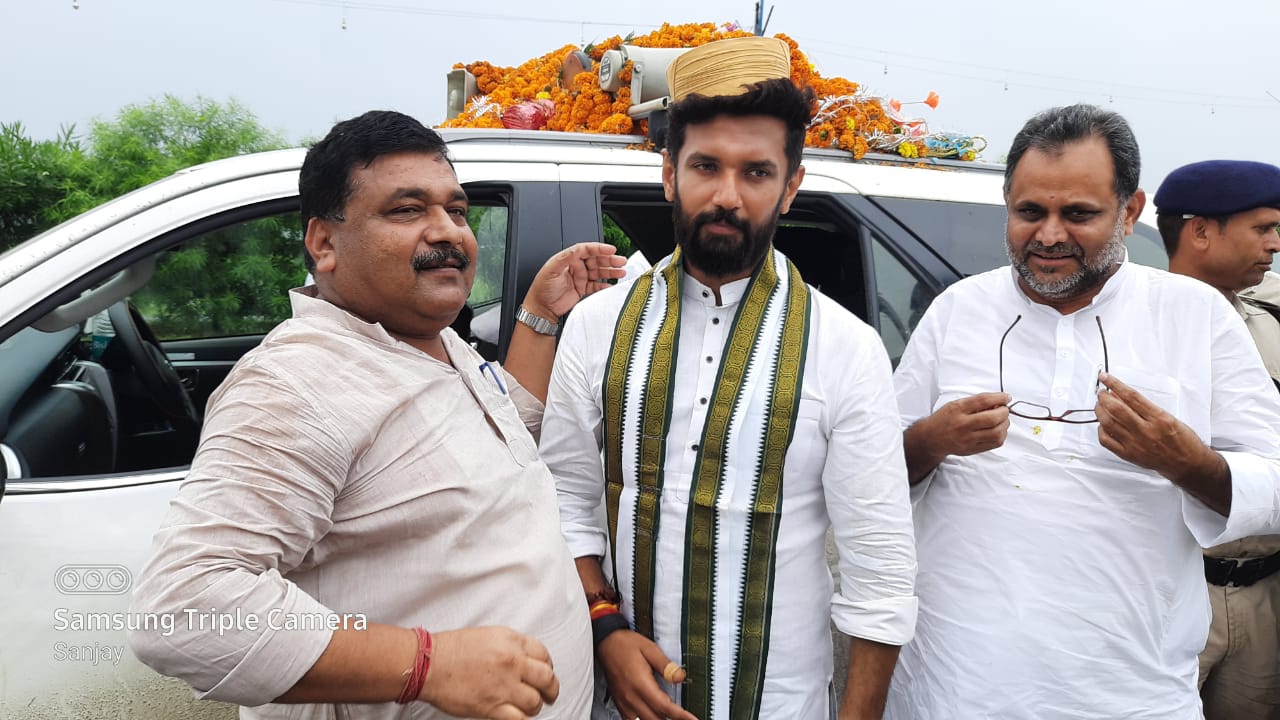 प्रदीप ठाकुर के नेतृत्व में लोजपा कार्यकर्ताओं ने किया चिराग पासवान का स्वागत।