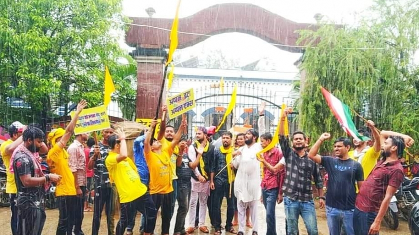 बारिश भी इनका हौसला नही तोड़ सकी। समाहरणालय के गेट पर पहुँच कर जमकर नारेबाजी की गयी। वहीं एक प्रतिनिधिमंडल ने जिलाधिकारी को ज्ञापन भी सौंपा।