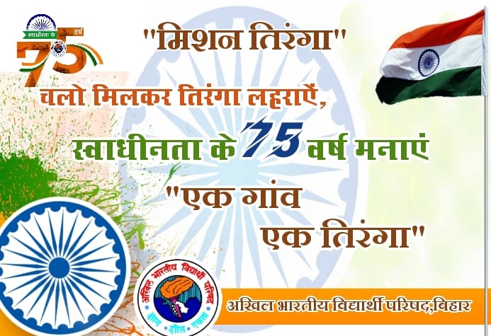 स्वाधीनता के 75वें वर्षगांठ पर विद्यार्थी परिषद द्वारा चालाया जाएगा तिरंगा अभियान।