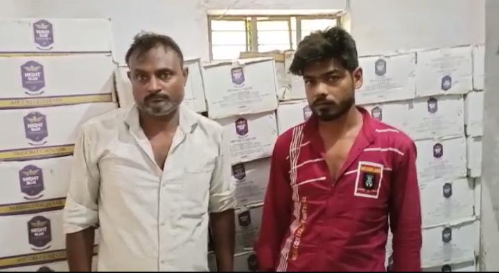 मुरही लदे ट्रक से 210 कार्टून विदेशी शराब बरामद, दो गिरफ्तार।