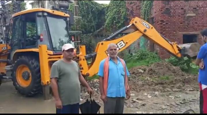 निजी खर्चे से जेसीबी मंगवाकर एक समाजसेवी ने सांसद के आवासीय मुहल्ले से करवाया जलनिकासी।