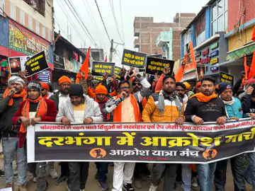 बांग्लादेश में हिंदुओं पर अत्याचार के विरोध में दरभंगा में आक्रोश मार्च।