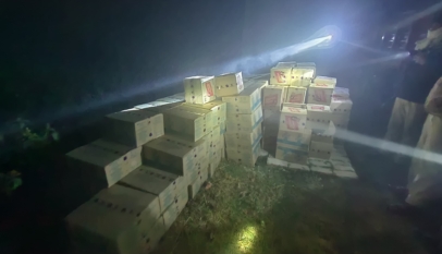 पुलिस की छापेमारी में भारी मात्रा में विदेशी शराब बरामद।