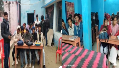 नाम मिटा, विवाद बढ़ा: गोठ के प्लस टू स्कूल के 400 छात्र दो कमरों में सिमटे।