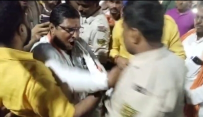 विरोध प्रदर्शन के दौरान भाजपा कार्यकर्ताओं की पुलिस से हुई हाथापाई।