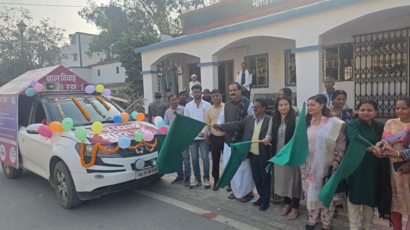 दरभंगा: बाल विवाह मुक्त भारत अभियान के तहत शनिवार को समाहरणालय परिसर से बाल विवाह मुक्ति रथ को रवाना किया गया। इस रथ को दरभंगा के सांसद गोपापजी ठाकुर ने हरी झंडी दिखाकर रवाना किया।