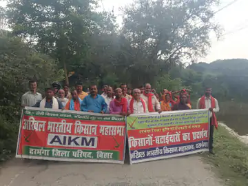 दरभंगा: बेमौसम बारिश से फसलों को हुए भारी नुकसान और मुआवजा न मिलने से आक्रोशित किसानों व बटाईदारों ने बुधवार को जोरदार प्रदर्शन किया। अखिल भारतीय किसान महासभा के बैनर तले सैकड़ों किसान बहादुरपुर प्रखंड मुख्यालय से जुलूस निकालते हुए जिला कृषि पदाधिकारी कार्यालय पहुंचे और गेट जाम कर नारेबाजी की।